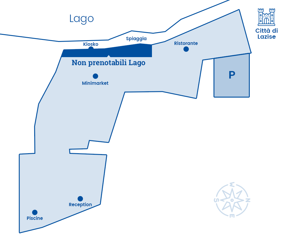 Le Piazzole non prenotabili Zona Lago, sono la punta di diamante di tutta la struttura. Sono spazi dove è possibile godere del panorama migliore di tutto il campeggio. Misurano 55 mq e hanno tutte un amperaggio di 10A.